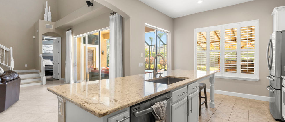 Welcome to the highly sought-after, 24-hour guard gated community of Waterchase—where resort-style living meets timeless Florida charm! This stunning Mediterranean style, two-story home offers 4 spacious bedrooms, 3.5 bathrooms, a 3-car garage and almost 3,200 square feet of beautifully designed living space. Thoughtfully updated and meticulously maintained, every inch of this home is made for indoor and outdoor entertaining. From the moment you enter, you'll notice the high-end finishes that elevate this home—including plantation shutters throughout the main level and custom built-ins. This home has no carpet allowing for easy maintenance. The remodeled kitchen is a showstopper, boasting a massive quartz-topped island with counter-height seating, stainless steel appliances, a custom range hood, tile backsplash with decorative inset, workstation, and a separate pantry with glass door. The kitchen opens seamlessly into the oversized great room, where soaring two-story ceilings, recessed lighting, and custom cabinetry create an inviting gathering space. The spacious first-floor primary suite is a private retreat with a coffered ceiling, large windows overlooking the lanai, two walk-in closets (including one with custom shelving), and a luxurious en-suite bath with quartz countertops, double sinks, a stone accent wall, beautifully tiled glass-door shower, and built-in storage. A second main-level bedroom currently serves as an office and includes a Murphy bed that conveys with the home, as well as an adjacent full bath. You’ll also find a separate office/den with custom built-in desk and storage. Upstairs is a bonus/flex space perfect for a playroom or movie zone as well as two more bedrooms and an updated secondary bathroom with large vanity and a vessel sink, seamless glass door shower and plenty of storage. Step outside to your backyard oasis—featuring a heated saltwater pool, screened lanai with brick pavers, covered seating, and an outdoor kitchen complete with grill, bar seating, and a decorative tiki-style roof makes outdoor entertaining effortless. A pool bathroom with direct lanai access adds convenience for friends and family. Additional highlights include a full laundry room with storage, Ring doorbell and security system, Air Vac system, and a sprinkler system. Waterchase offers a lifestyle like no other—enjoy access to two resort-style community pools (including a thrilling two-story spiral waterslide), a fitness center, tennis, pickleball and basketball courts, a turf playground, beautifully appointed clubhouse, full-time activities director, and more. Waterchase hosts year-round events to include the Spring Fling, holiday celebrations and numerous clubs and camps for all age groups. Nearby, you’ll find the Ed Radice Sports Complex—spanning nearly 140 acres of athletic fields and scenic trails. For golf enthusiasts, The Eagles Golf Club and Westchase Golf Club are just minutes away and offer championship courses surrounded by natural beauty. Looking for a family outing? Head to Raprager Family Farms for seasonal festivals, or spend a thrilling afternoon watching live thoroughbred racing at nearby Tampa Bay Downs. All of this, plus access to A-rated schools, numerous shopping and dining options, convenient Interstate access, and a quick 20-minute drive to Tampa International Airport, makes this location second to none. Schedule your showing today and experience all that this incredible lifestyle has to offer!