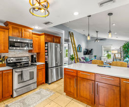 Nestled just a block away from the serene Whitcomb Bayou, this truly one-of-a-kind property exudes storybook charm and character. Featuring a 3-bedroom, 2-bathroom main home and a fully furnished guest cottage with A/C and plumbing, this property offers endless opportunities for versatile living. As you arrive, you'll appreciate the ample parking, complete with space for a boat and RV, and the convenience of RV water/electric and sewer connections. The property boasts completely paid-off solar panels, ensuring minimal energy costs for years to come, along with new covered gutters that come with a lifetime warranty. The main home welcomes you with an inviting front porch deck nestled under a charming pergola, where you can relax to the sound of water fountains beneath a canopy of large oak trees. Enter through the natural wood French doors to discover stunning hardwood flooring throughout, beautifully complemented by plantation shutters and cordless Levolor light filtering roller shades in the family room and dining area. The kitchen, beautifully remodeled in 2021, features elegant wood cabinetry, quartz countertops, and a Rockledge backsplash. Modern stainless steel appliances, including a farmhouse sink, are highlighted by stylish pendant lighting. The owner’s suite, framed by crown molding and high ceilings, includes a large walk-in closet and an ensuite bathroom with dual glass vessel sinks atop a granite countertop and a stand-up shower with a frosted glass door. Both guest bedrooms are generously sized and feature tray ceilings that elevate the space. Indoor laundry adds convenience to your daily routine. Numerous upgrades provide peace of mind, including two A/C units (one replaced in 2023) with separate thermostats, newer double pane windows replaced throughout in 2020 for energy efficiency, and a water filtration system installed in 2021. The backyard is a true entertainer's paradise, featuring a brick-lined pathway leading to a hot tub and seating area, and a barn shed transformed into a cozy 360 sqft guest cottage in 2022. This charming guest house includes a loft area for sleeping, beautiful arches, its own bathroom, and a kitchenette, offering a unique living experience. There is also a separate shed providing additional storage or the perfect creative space for an artist’s studio. This home offers a unique living experience, golf cart friendly with nearby amenities such as the Tarpon Springs Golf Club, downtown Tarpon Springs, the Pinellas Trail, the world-famous Sponge Docks, Fred Howard Park, and more. Enjoy easy access to Tampa, Clearwater Beach, Dunedin, Honeymoon Island, and Caladesi Island. This property is not just a home, but a way of life. Here time slows down letting your creative ideas run wild, don’t let this home get away, schedule your showing today.