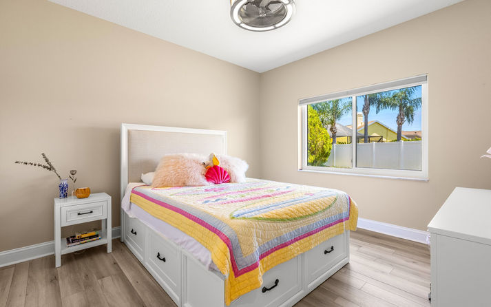Discover your perfect retreat in this stunning 4-bedroom, 3-bathroom rental nestled within the tranquil community of Wyndtree. Immerse yourself in luxury living as you step into this exquisite haven, boasting a thoughtful split-bedroom floor plan and awe-inspiring soaring ceilings. Entertain effortlessly in the open and spacious layout, complete with built-in surround sound, flooding the space with harmonious melodies. The kitchen seamlessly flows into the family room, anchored by a cozy wood-burning fireplace, creating the perfect ambiance for gatherings with loved ones. Indulge in relaxation within the primary suite, offering two walk-in closets, sliders leading to the lanai featuring a rejuvenating hot tub, and an en suite bath adorned with a lavish soaker tub and walk-in shower. Unwind to the soothing sounds of nature while soaking in the hot tub, overlooking the picturesque pond setting a true oasis of tranquility. Conveniently situated near premier golf courses, shopping destinations, and hospitals, this home ensures both luxury and practicality. You will appreciate the proximity to sought-after public schools and the esteemed Plato Academy Charter School. Don't miss out on the opportunity to make this dream rental your reality!
